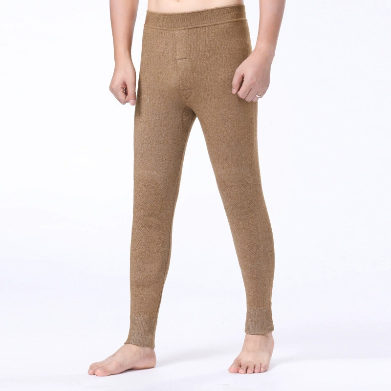Hengyuanxiang quần cashmere của nam giới mùa thu và mùa đông rắn màu bó sát xà cạp một lớp đơn thuần cashmere hai sợi quần nhiệt nam - Quần nóng lên