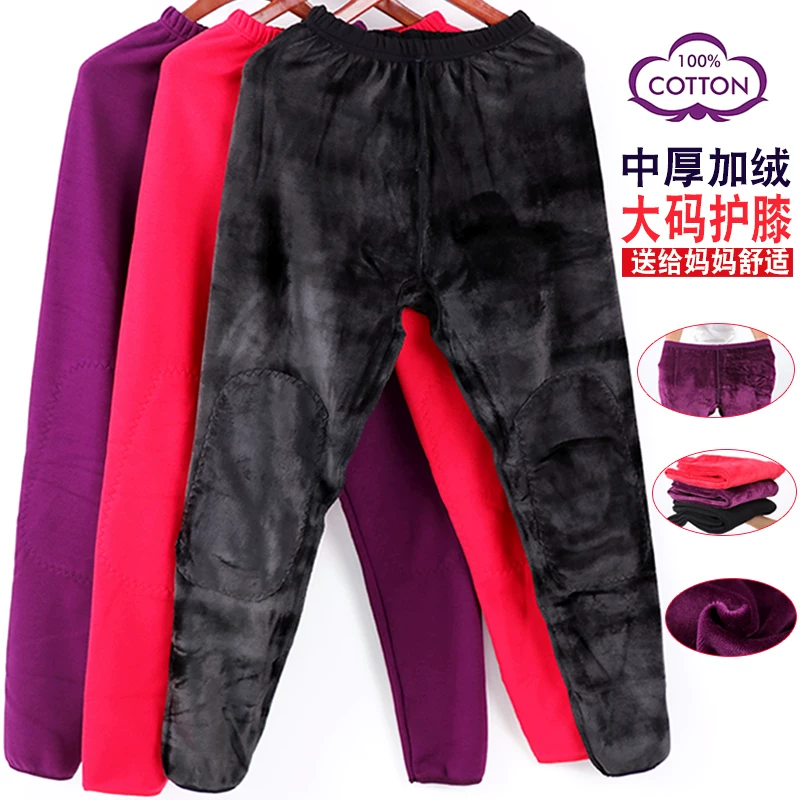 Phụ nữ béo cộng với size quần ấm đệm đầu gối cho người trung niên và cao tuổi cộng với nhung dày cotton quần len mẹ quần rộng rãi - Quần nóng lên