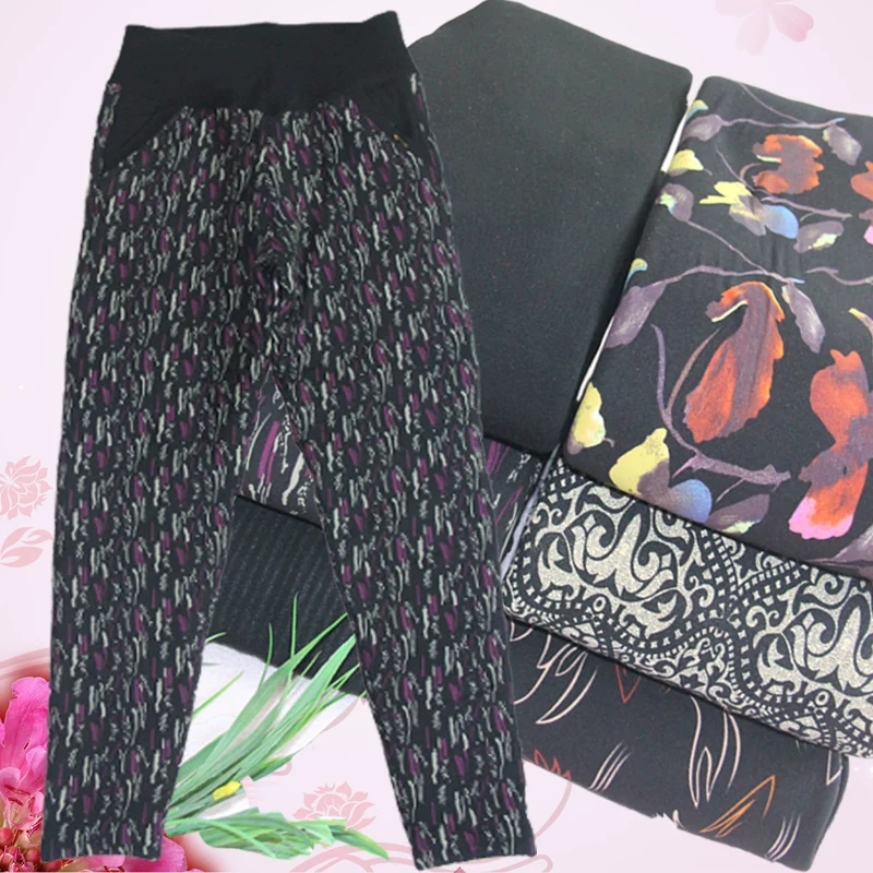 Bốn mùa hoa mẫu đơn mới quần nhiệt nữ quần legging lụa mỏng trung bình dày vừa mùa thu và đông quần vải bông ngoài lưng cao - Quần nóng lên