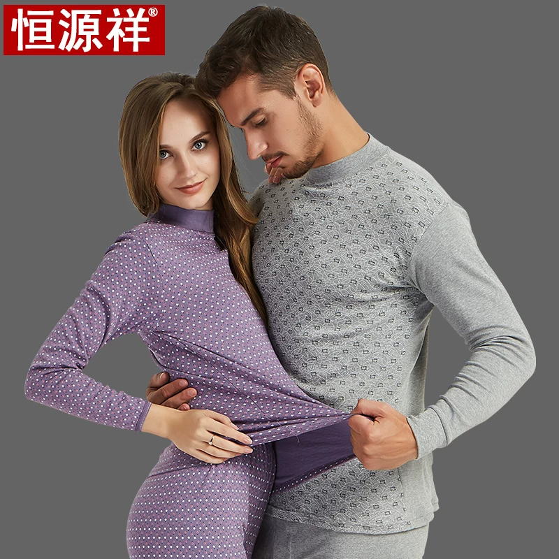 Hengyuanxiang chính hãng mỏng phương thức quần áo mùa thu dài quần dài nam và nữ đồ lót nhiệt phù hợp với áo len cotton cổ chữ V đáy - Phù hợp với nóng lên