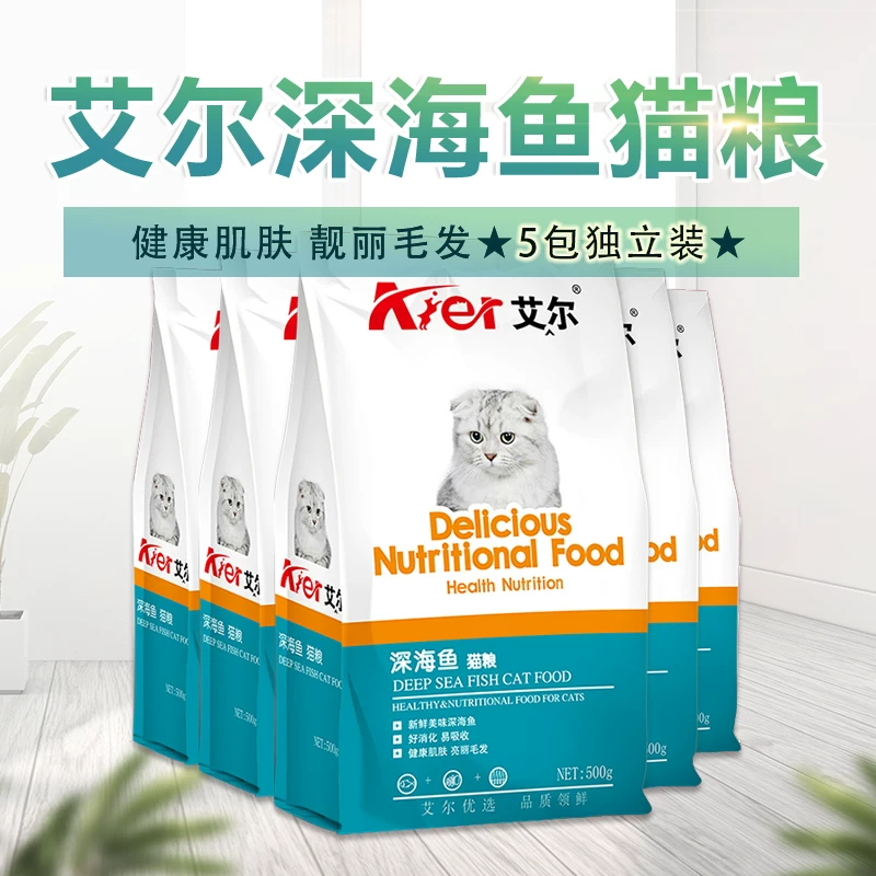 Aier hương vị cá biển sâu vào mèo con thức ăn cho mèo đủ thời kỳ thức ăn cho mèo thức ăn cho mèo thức ăn khô cho mèo Thức ăn chủ yếu cho mèo 500g5 gói 2,5kg - Cat Staples