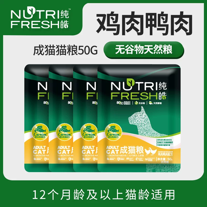 Trái cây 4 con, Rau, Thức ăn cho mèo, Thức ăn cho chó, Thức ăn chủ lực dùng thử, Dễ dàng mang theo 3 gói 9,9 Nhân dân tệ, Gói đơn 50g - Cat Staples