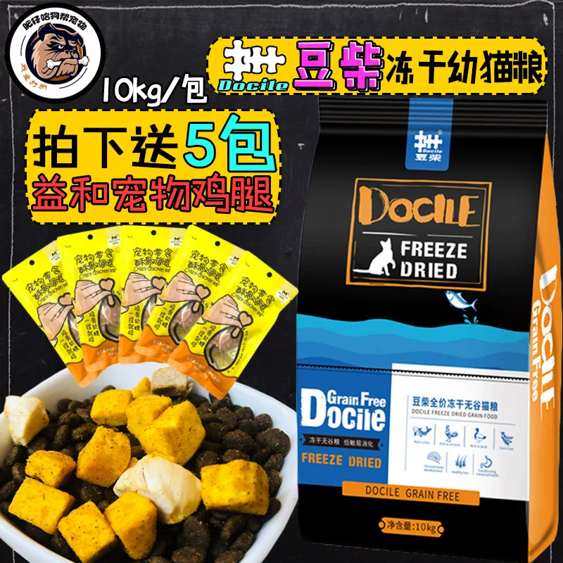 Dou Chai Thức ăn khô đông lạnh cho mèo Độ nhạy cảm thấp Thức ăn tự nhiên không chứa ngũ cốc Mèo con Sữa nhỏ Thức ăn chủ yếu cho mèo 4-12 tháng Vỗ béo 10kg - Cat Staples