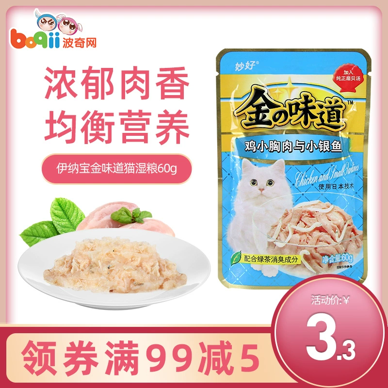 Boqi.com Thức ăn cho mèo Thức ăn cho mèo Đồ ăn nhẹ cho mèo Inabao Miaohao Ức gà Whitebait nhỏ đa hương vị Gói thức ăn ướt 60g - Đồ ăn nhẹ cho mèo