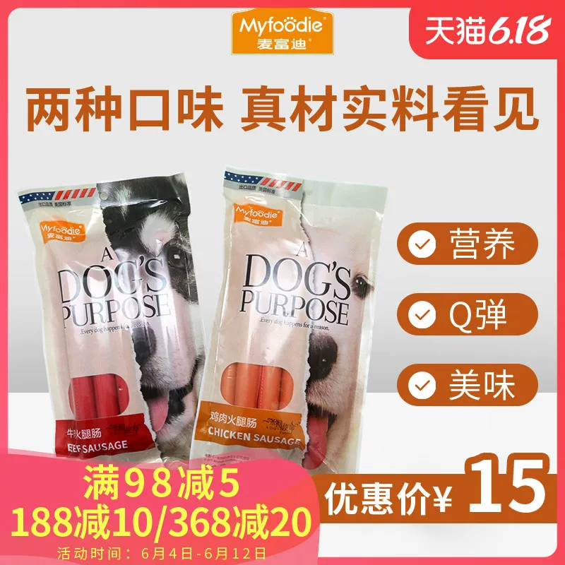 Maifudi Dog Ham Xúc xích 300g Thịt bò Gà Hương vị Teddy Puppy Dog Đào tạo Xúc xích Snack Thịt Thịt Thịt khô - Đồ ăn vặt cho chó