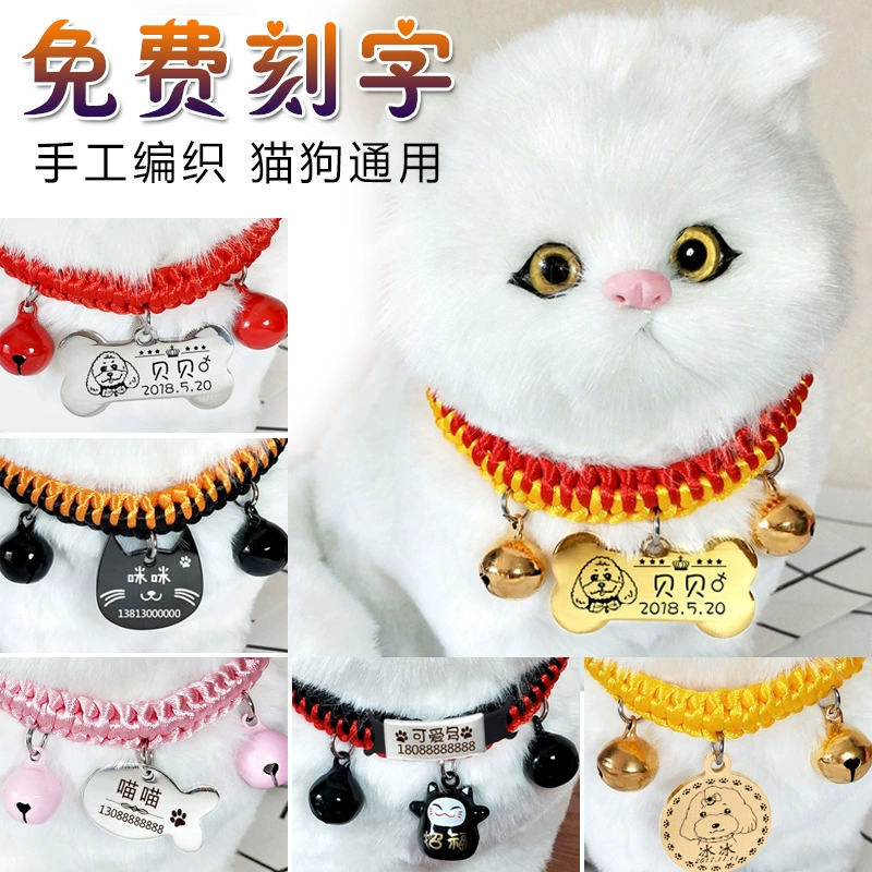 Dệt cổ mèo chữ dễ thương phim hoạt hình chuông dây chó tag handmade vòng cổ Teddy xanh mèo Anh trang sức ngắn - Cat / Dog hàng ngày Neccessities