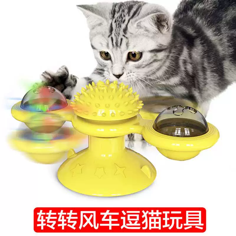 Đồ chơi mèo phát sáng quay cối xay gió bạc hà bóng bàn xoay trêu chọc đồ chơi mèo cào và cọ xát thiết bị lông mèo bàn chải vật nuôi - Mèo / Chó Đồ chơi