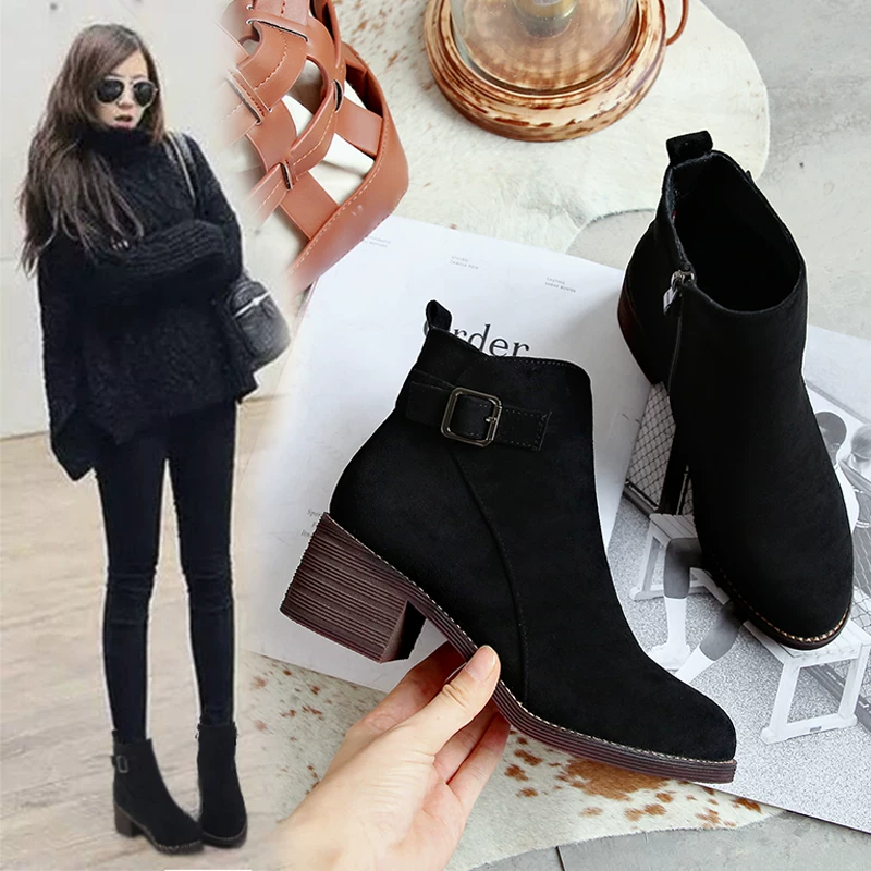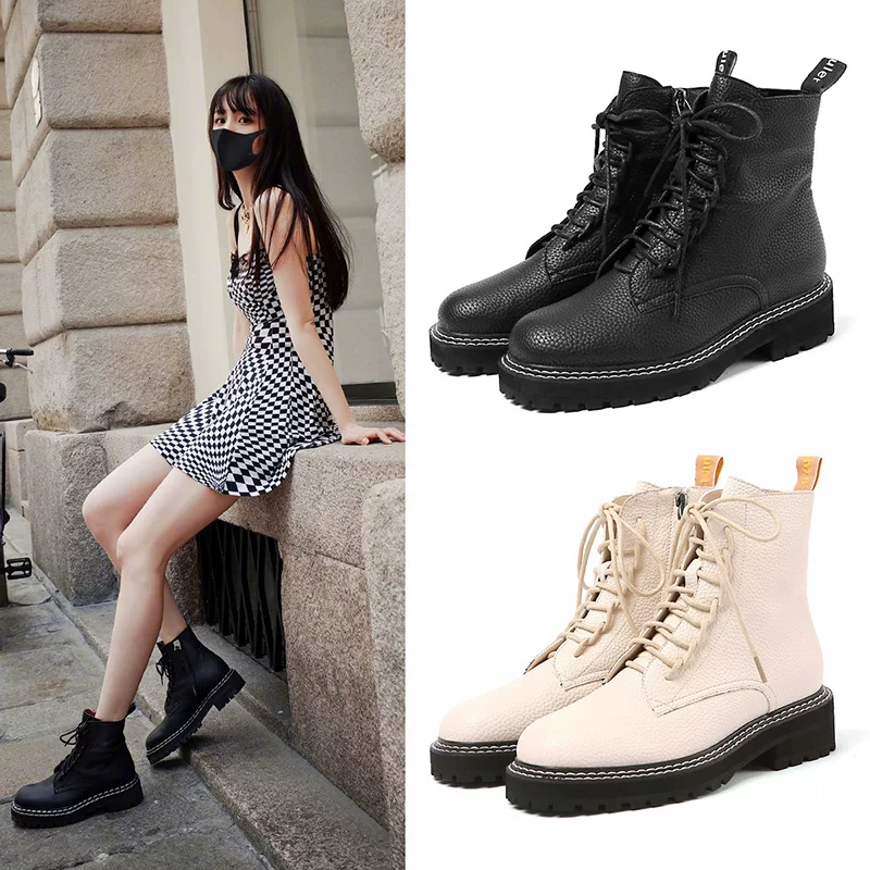 Năm 2020 mùa xuân, mùa thu và mùa đông mới của Hàn Quốc giày cao gót dày gót ngắn giữa gót giày Martin giày phụ nữ giày ủng đơn khởi động giày khỏa thân giày phụ nữ - Bật lửa