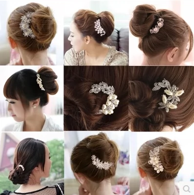 Hàn Quốc kim cương chèn lược lược tấm phụ kiện cài tóc Kẹp tóc hình chữ U cài đầu hoa phụ kiện tóc rhinestone hoa kẹp tóc chèn lược - Vòng đeo tay Cuff