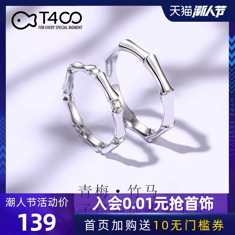 Nhẫn T400 nữ thời trang nam cá tính nhẫn cặp đôi bạc nhật bản hàn quốc đơn giản món quà sinh nhật tình yêu đường dài - Nhẫn