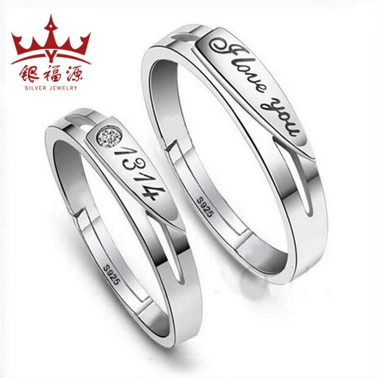 925 sterling bạc cặp đôi vòng cổ nam và nữ một cặp dây chuyền bạc nhẫn mặt dây chuyền món quà ngày lễ tình nhân miễn phí chữ - Nhẫn
