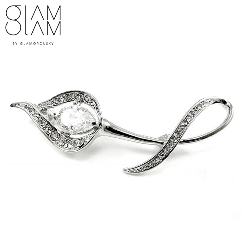 Calla lily khí chất đơn giản trâm cài áo khoác nữ áo khoác khăn choàng khóa pha lê nhân tạo phụ kiện hàn quốc - Trâm cài