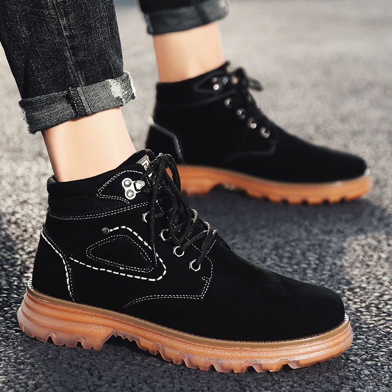 Giày cao cổ Martin mùa thu nam Phong cách Anh 2020 giày cao cổ nam giày hợp thời trang cắt giữa giày nam công cụ tất cả các kết hợp giày bông tuyết - Kính khung