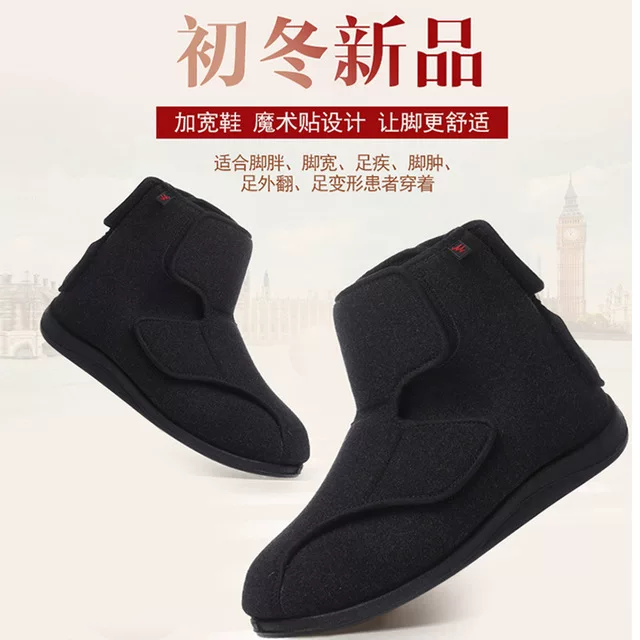 Ủng mùa đông, ủng cắt giữa, giày vải Velcro có thể điều chỉnh rộng rãi phía trước và phía sau, biến dạng bàn chân của bệnh nhân tiểu đường, ủng đi tuyết chân béo - Kính khung