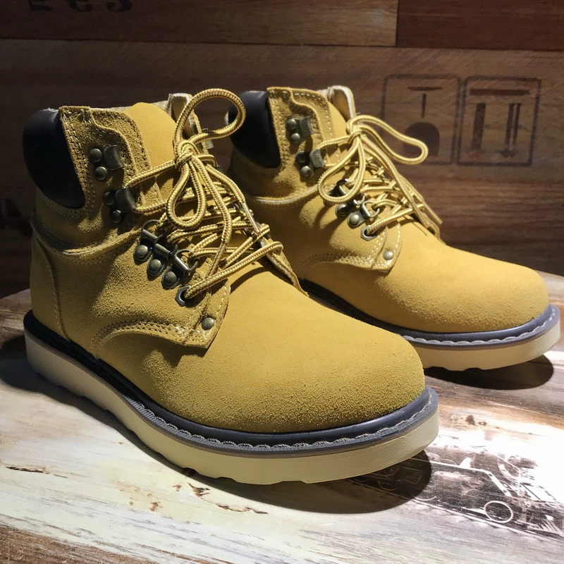 Nam ca sĩ diện đồ da thu đông giày bốt cổ ngắn, giày mũi to, bốt cao cổ đại hoàng, bốt ấm áp, bốt da chống thấm ống giữa - Kính đeo mắt kính