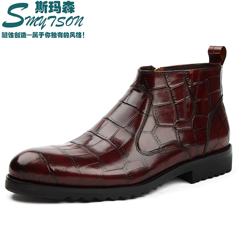Mô hình cá sấu Giày bốt da mũi nhọn của người đàn ông Anh thời trang da giày cao cổ giày da nam Giày cao cổ Martin boots thời trang giày cao cổ nam - Swiss Army Knife
