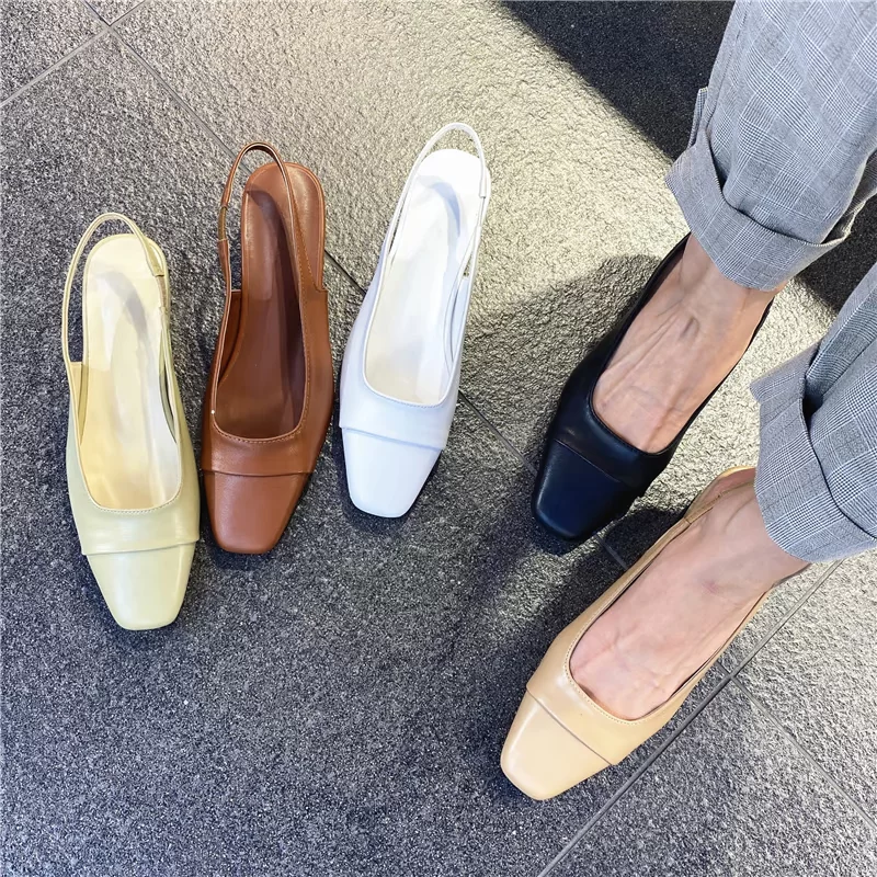 Hàn Quốc giày dongdaemun của phụ nữ 2020 mới mùa xuân hoang dã retro khâu đầu vuông miệng nông miệng sau dây đeo giày thấp trên - Giày cắt thấp