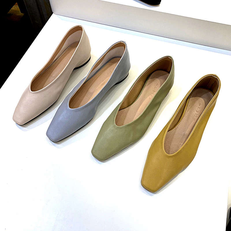 Xuất khẩu sang Châu Âu và Hoa Kỳ thương mại nước ngoài giày đơn ban đầu phụ nữ đầu tròn phẳng nông cạn giày lười da cắt thấp 2020 mùa xuân mới - Giày cắt thấp