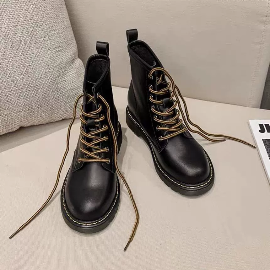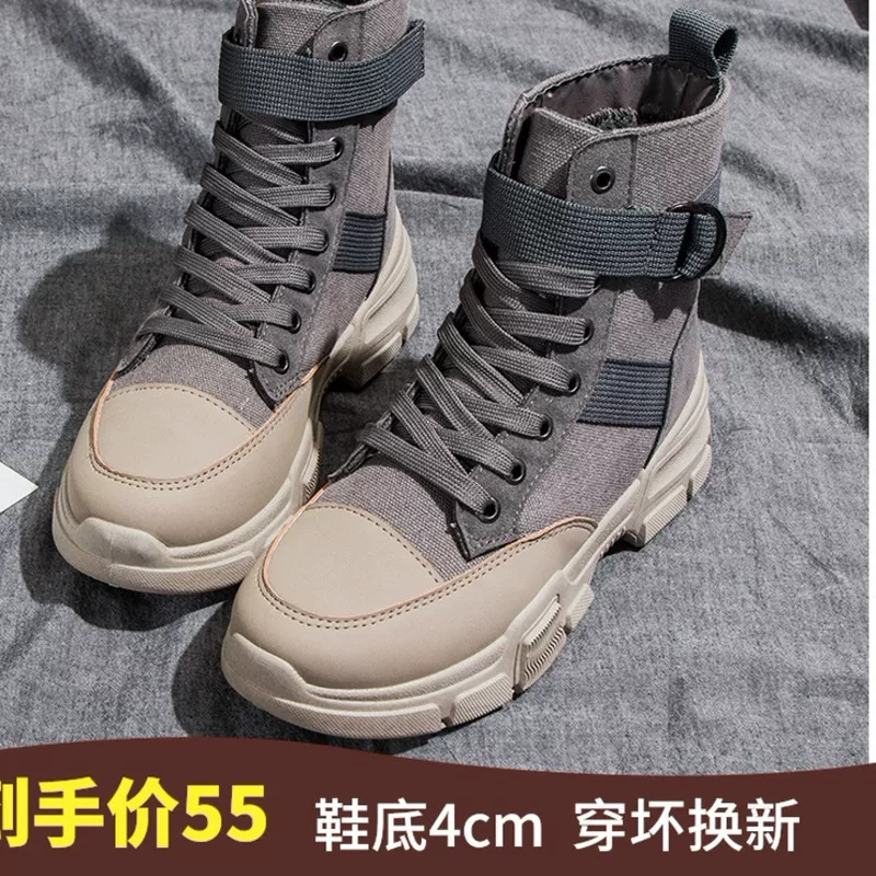 Giày bốt đế dày 2020 mùa thu và mùa đông da thời trang mới lưới màu đỏ cao cấp giản dị Hàn Quốc thể thao Martin boots nữ - Giày cao gót