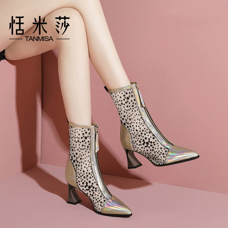 Châu Âu 2020 hè cá tính mới sợi lưới sandal nữ rỗng miệng giữa gót chân lưới da giày nữ giày ngắn - Sandal
