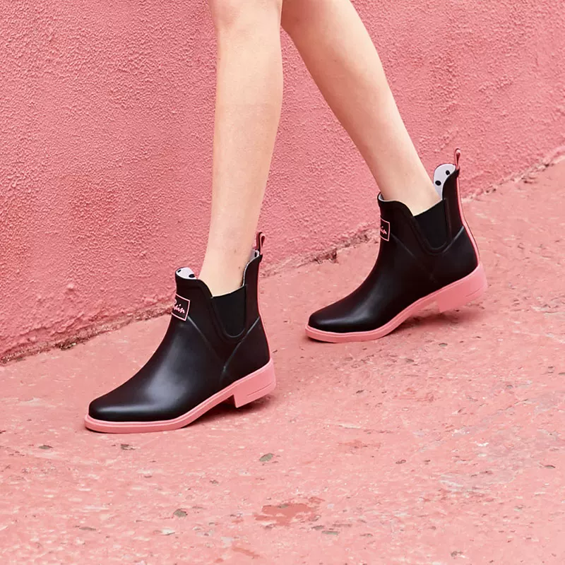 Khiếm khuyết của phụ nữ mùa xuân và mùa hè ống thấp Chelsea giày ống ngắn ống cao su màu đen giày mưa màu đen nhọn gót thấp nhặt đơn - Rainshoes