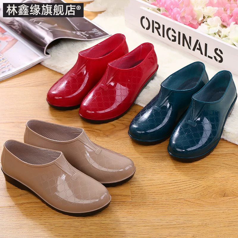 Mùa xuân và mùa thu nông miệng giày thấp cổ giày đi mưa nữ hàn quốc người lớn ống ngắn không thấm nước giày cao su giày chống trượt nước giày đi mưa giày làm việc - Rainshoes