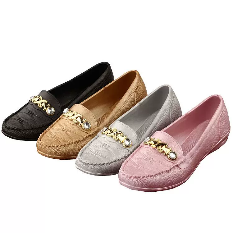Phiên bản Hàn Quốc của giày đi mưa nữ nông miệng thấp không thấm nước Giày thấp chống nước thoải mái phẳng đáy giày chống trượt giày y tá giày đậu Hà Lan - Rainshoes