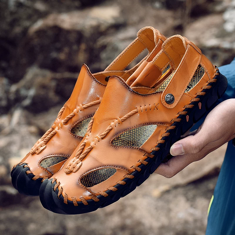 Mùa hè mới dép nam da thoáng khí Baotou giày đi biển da chống trượt đi bộ đường dài ngoài trời đi dép thông thường và dép nam - Sandal