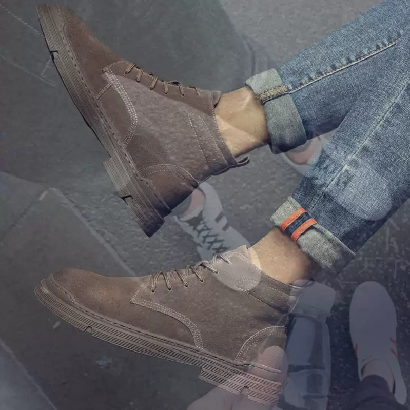 Mùa thu Martin Bốt nam cao cấp của nam giới Hàn Quốc giày dụng cụ bình thường giày cao cấp giữa trên sa mạc Bốt cao cổ của Anh Giày cao cổ của nam giới - Giày ống