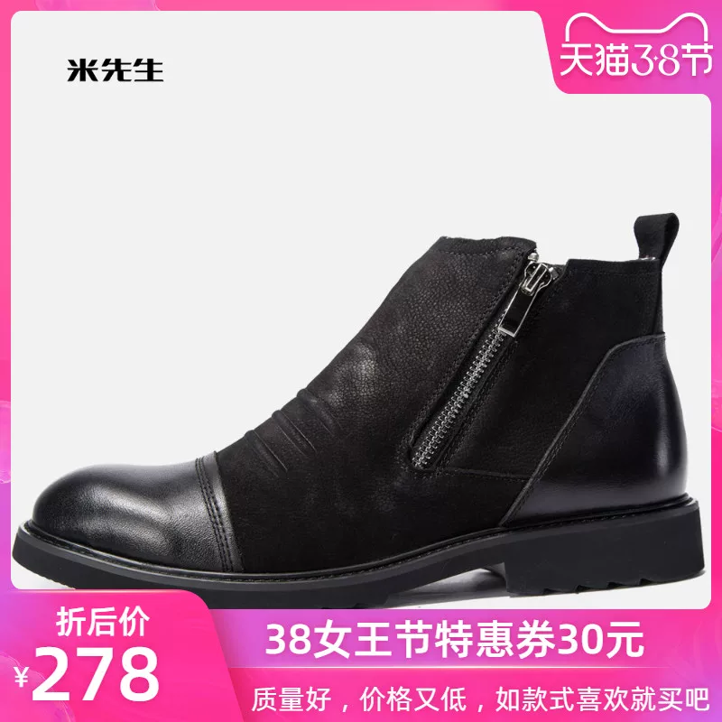 Giày cao cổ nam Mi 2018 mùa xuân mới dây kéo bên hông cao, giày da ngắn cổ cao nhất lớp da bò Chelsea - Giày ống