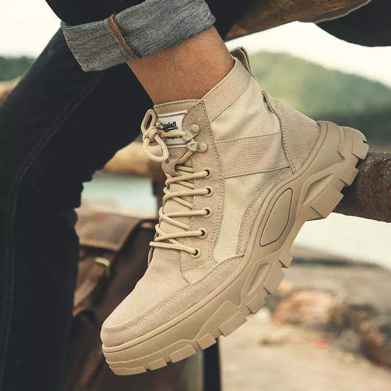 Mùa thu và mùa đông giày Martin giày cao cổ nam giày cao cổ tuyết giày nam giữa thủy triều lên xuống màu cát dụng cụ phong cách Anh phong cách hoang dã sa mạc - Giày ống