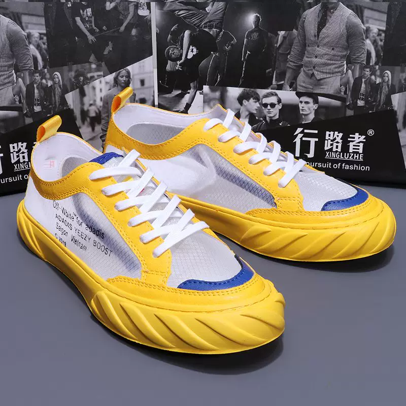 Giày vải nam sản phẩm mới mùa hè Châu Âu và Mỹ Xu hướng hoang dã giày thể thao đế thấp thoáng khí giày trắng đường phố giày lưới cá tính - Giày thấp