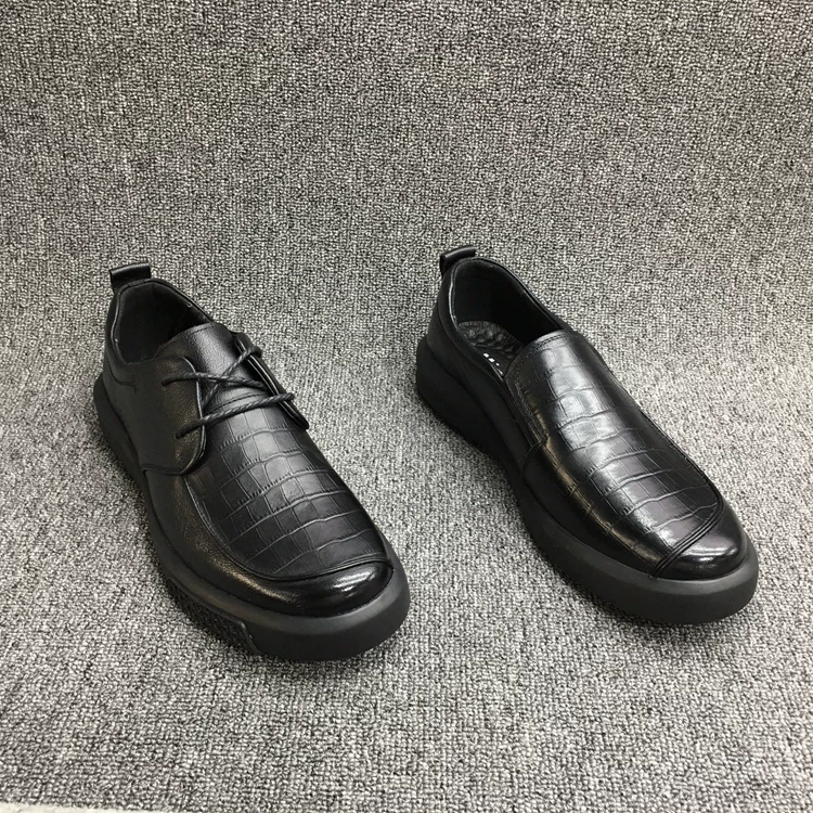 Thanh niên phiên bản low-top vô hình tăng 3 cm Giày Lok Fu hợp thời trang nam 2019 giày thể thao da thường không thấm nước - Giày thấp
