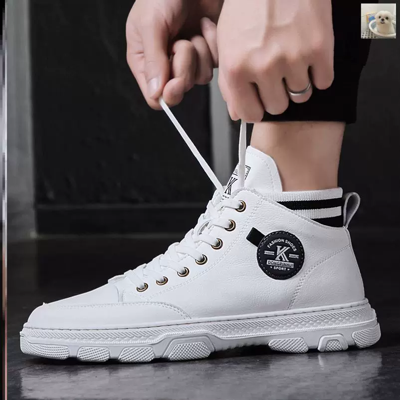 Giày nam trắng, giày cao cổ dành cho giới trẻ, giày nam cá tính thời thượng, giày nam đế dày bên trong, giày cao cổ thoáng khí - Giay cao