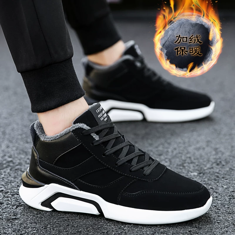 Giày mùa thu và mùa đông Giày da cao cấp mùa đông Giày thể thao nam giày sinh viên giày thủy triều cộng với nhung ấm áp đôi giày cotton nam Giày ấm - Giay cao
