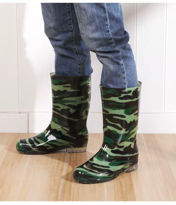 Giày đi mưa nam giày nước giày đi mưa thời trang nam giới mùa xuân và mùa hè giày không thấm nước chống trượt ống giữa giày cao su giày cao su giày nước nam ngụy trang - Rainshoes