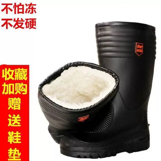. Cộng với nhung dày ủng đi mưa mùa đông nam và nữ giày cao su chống nước đế dày ủng chống thấm nước ủng nữ đi mưa ống dài cho công việc - Rainshoes