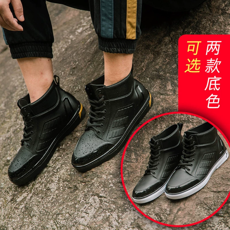 Kéo lại mùa xuân và mùa thu giày nam mưa Giày nam chống nước chống trượt ống cao ủng mưa trong ống giày cao su bằng nhựa - Rainshoes
