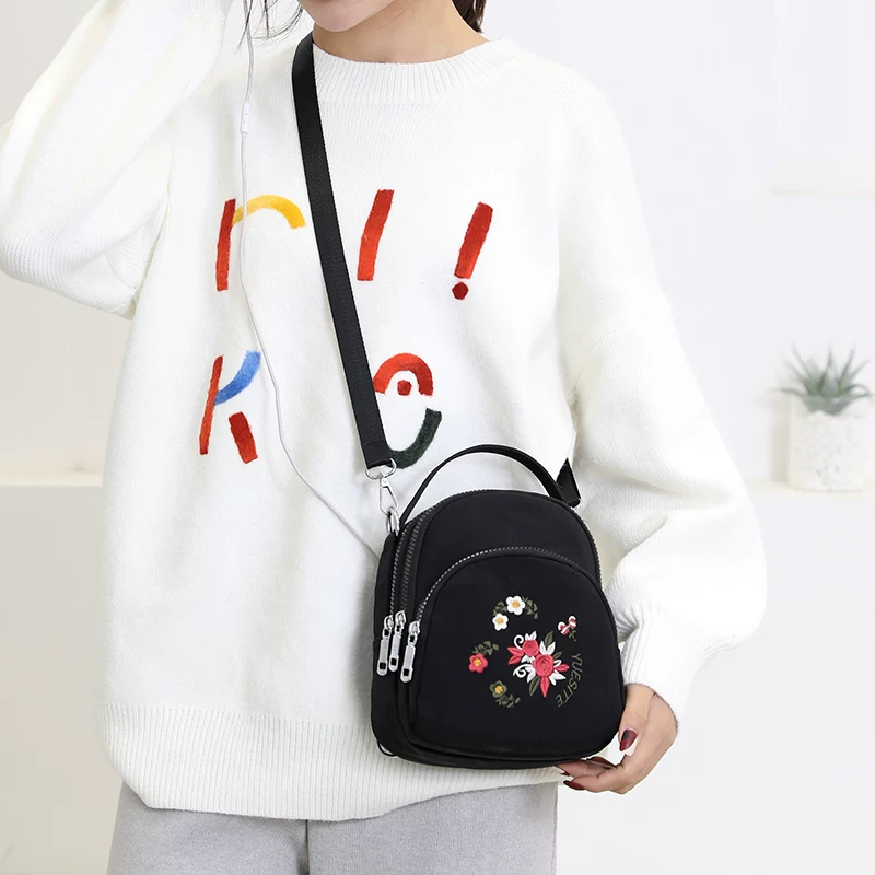 Túi Messenger nhỏ Nữ thời trang Thêu vải Oxford Đơn vai Nghệ thuật đa năng và Phù hợp với Ba lô nhỏ - Túi xách nữ