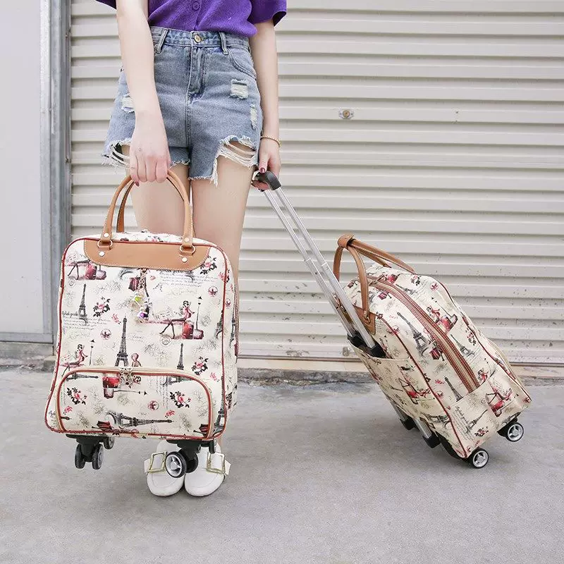 Túi lên máy bay, túi du lịch vẽ tay, xe đẩy, túi đựng đồ dung tích lớn di động, túi thể dục du lịch dày dặn kinh doanh - Túi du lịch