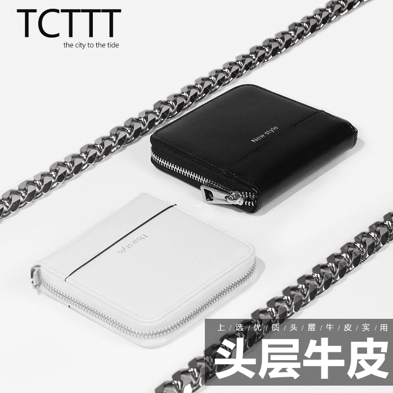 Shuo pha chế thủ công đơn giản dây kéo ví ví tiền lớp da bò đầu tiên - Ví tiền