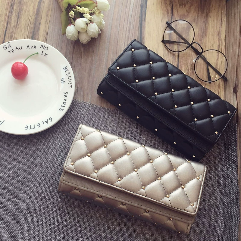 18 phiên bản tiếng Hàn mới của túi thủy triều retro châu Âu và Mỹ đinh tán ví nữ Lingge ví dài ba lần ví ví tiền xu - Ví tiền