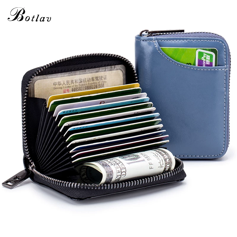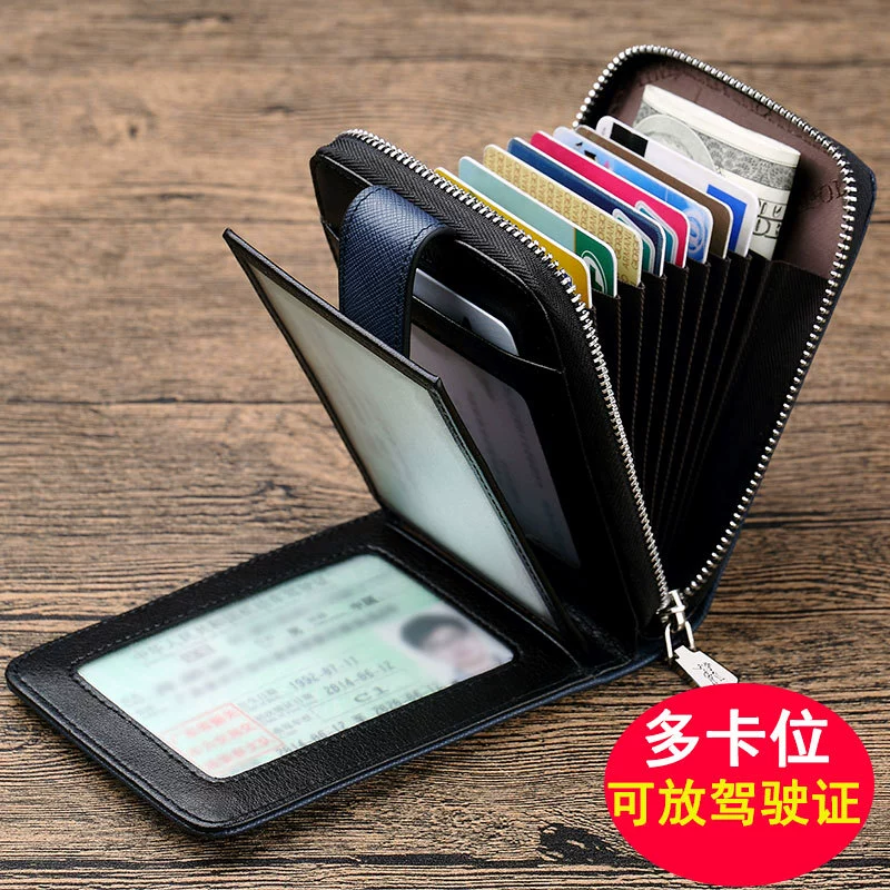 Thẻ lớn dung lượng lớn mới có nhiều thẻ da bò nữ Thẻ chủ thẻ dây kéo túi thẻ tín dụng tay áo thẻ mỏng nữ - Chủ thẻ