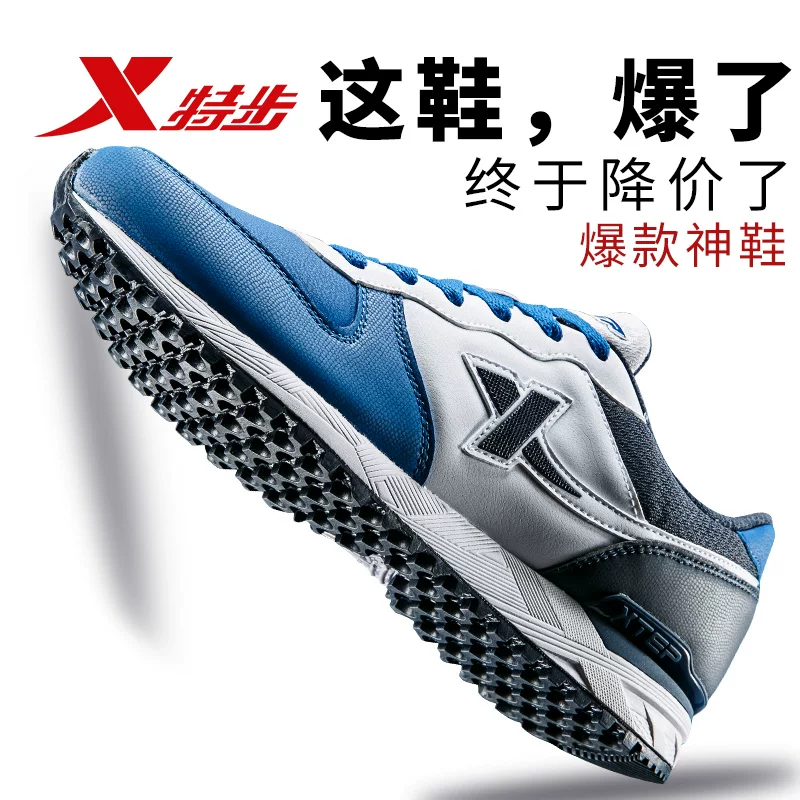 Giày nam Xtep mùa xuân giày chạy bộ mới Giày da bình thường Giày thể thao đích thực Giày nam đế chống mòn giày chạy sốc - Dép / giày thường