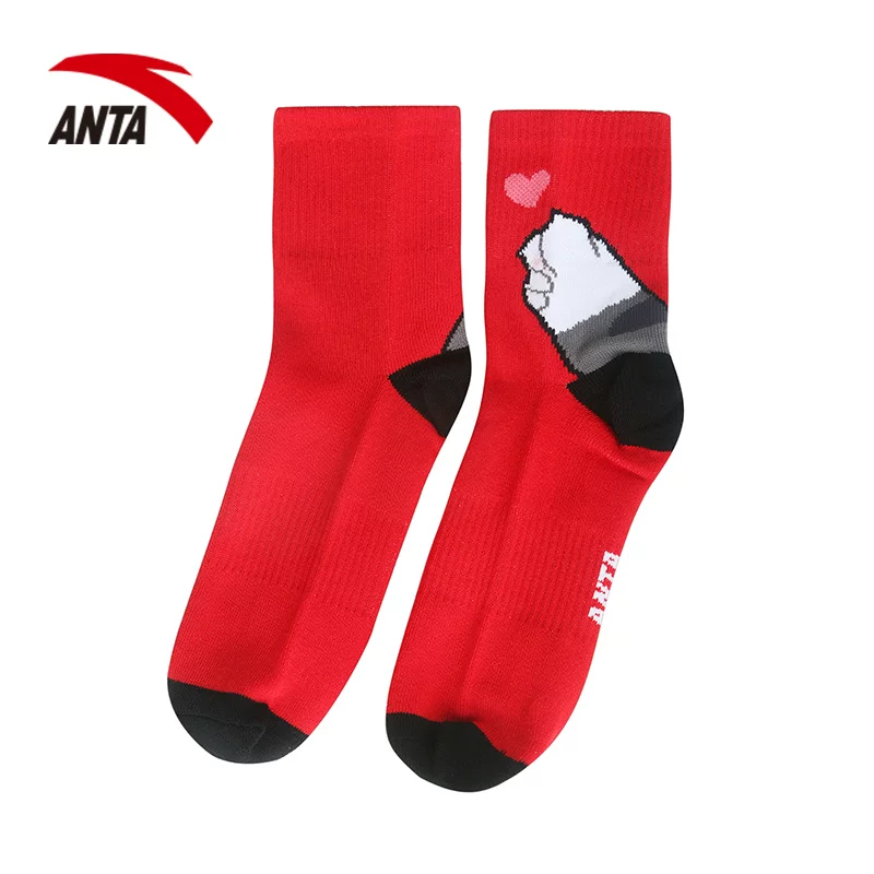 Trang web chính thức của tất thể thao Anta Vớ của phụ nữ vớ ống giữa năm 2020 mới màu đen và đỏ thoải mái chải bông kiểu thể thao vớ - Vớ thể thao