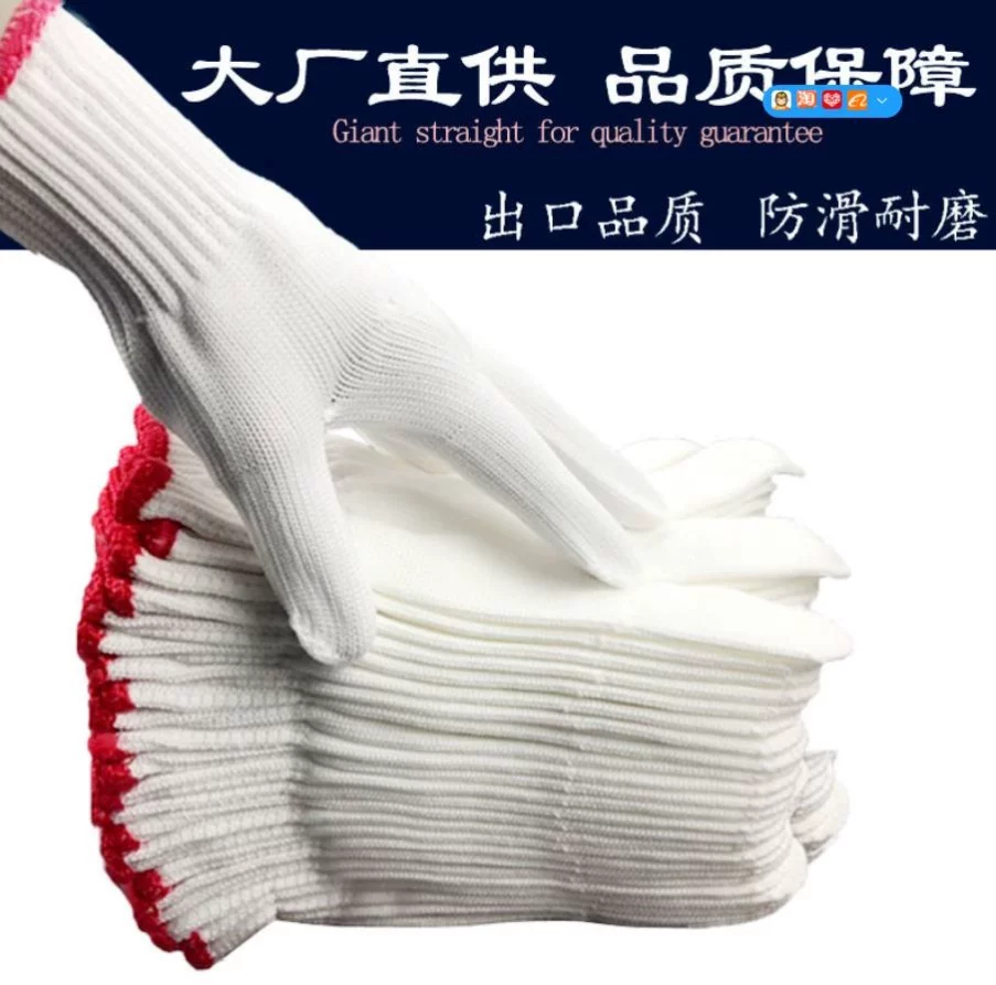 Găng tay bảo hiểm lao động bán buôn sợi bông chống mài mòn công trường dày bảo vệ thoáng khí găng tay sợi nylon mỏng trắng cho nam và nữ - Găng tay