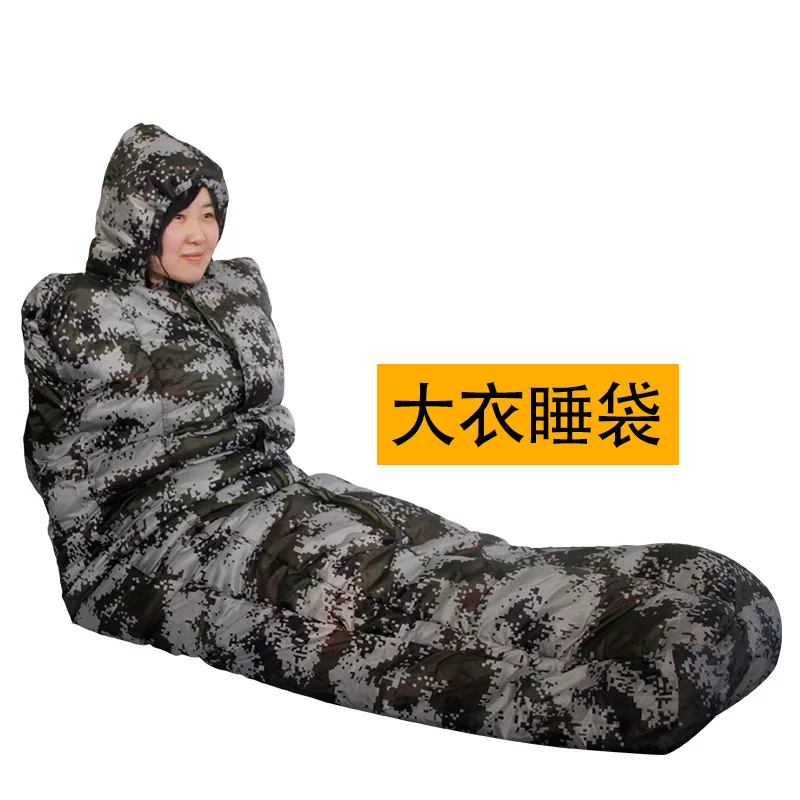 Quạt quân đội áo khoác ngụy trang túi ngủ đơn lính ngoài trời ánh sáng người lớn cắm trại huấn luyện ấm áp không thấm nước túi ngủ dung tích lớn - Túi ngủ