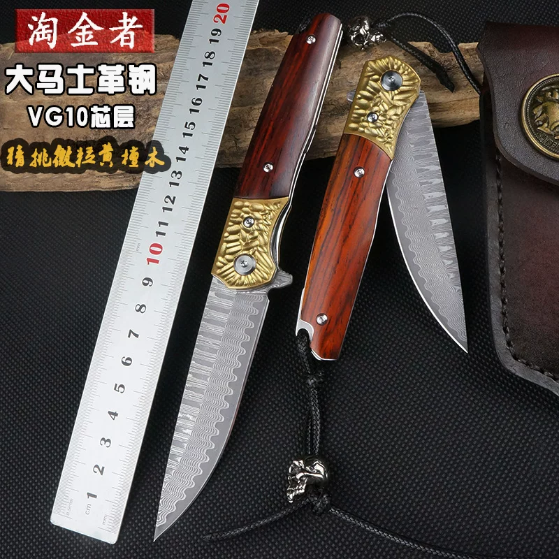 Dao gấp thép Damascus ngoài trời cầm tay độ cứng cao dao sắc nhọn VG10 dao quân sự cắm trại tự vệ bộ sưu tập - Công cụ Knift / công cụ đa mục đích