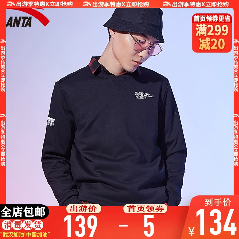 Anta áo len thể thao nam mùa xuân và mùa thu cổ tròn áo thun cộng với áo khoác nhung nam đích thực áo ấm giản dị trang web chính thức - Thể thao lông cừu / jumper