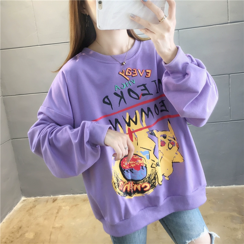 Hồng Kông hương vị lưới màu đỏ mùa thu áo khoác Pikachu cổ tròn áo len mỏng học sinh nữ mới xu hướng áo sơ mi học sinh Hàn Quốc - Thể thao lông cừu / jumper